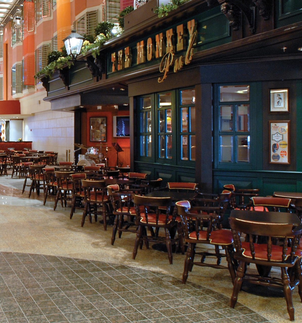 Nehmen Sie einen gepflegten Drink im Pub, direkt an der lebendigen Promenade an Bord von Color Fantasy (Donkey Pub) oder Color Magic (Monkey Pub).