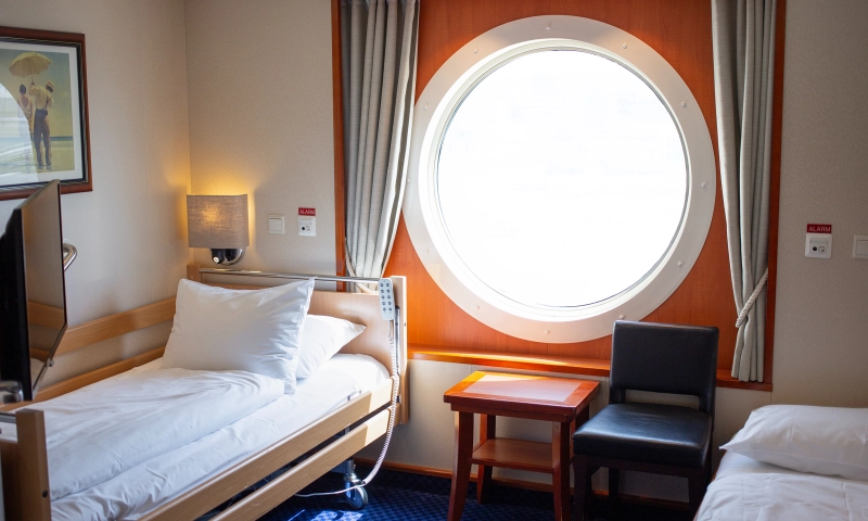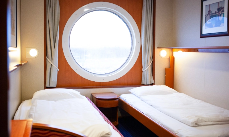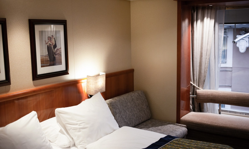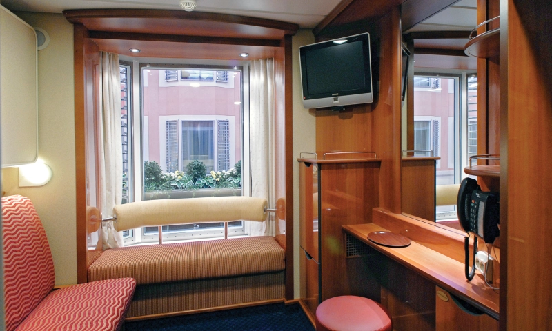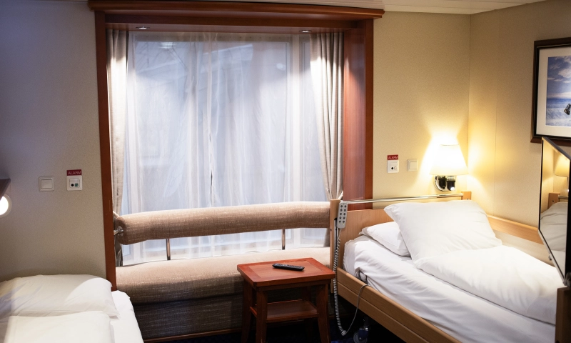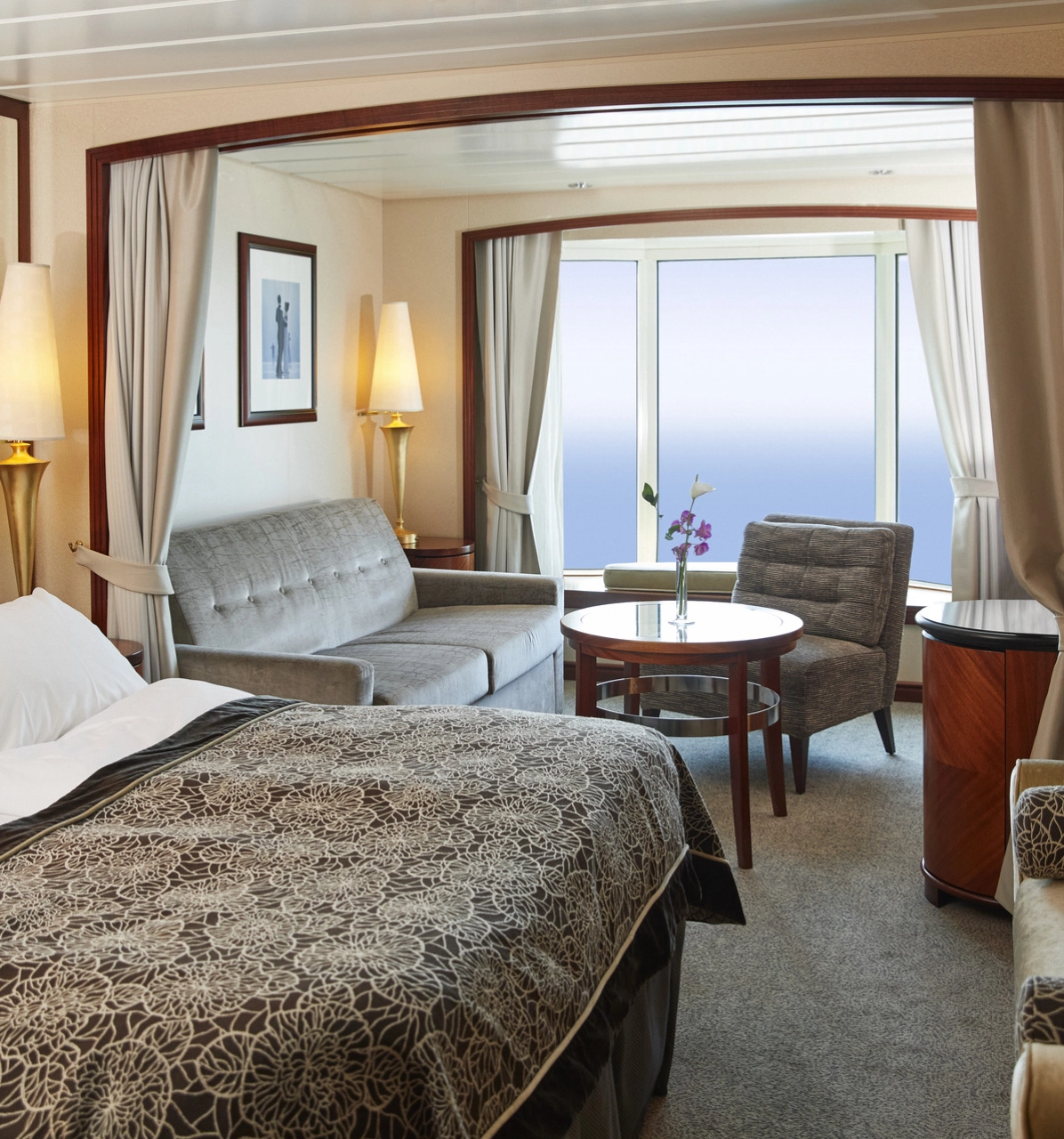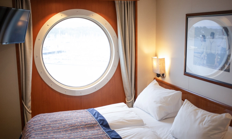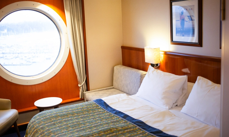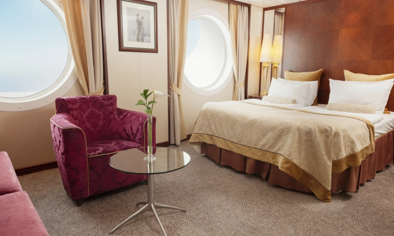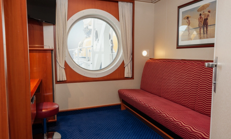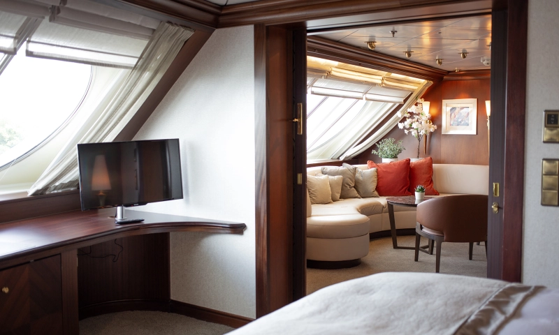 Übernachten Sie in der schönsten Kabine des Schiffes mit atemberaubendem Meerblick. Die Suite verfügt über ein Schlafzimmer sowie einen Wohnbereich mit einer gemütlichen Sitzecke.